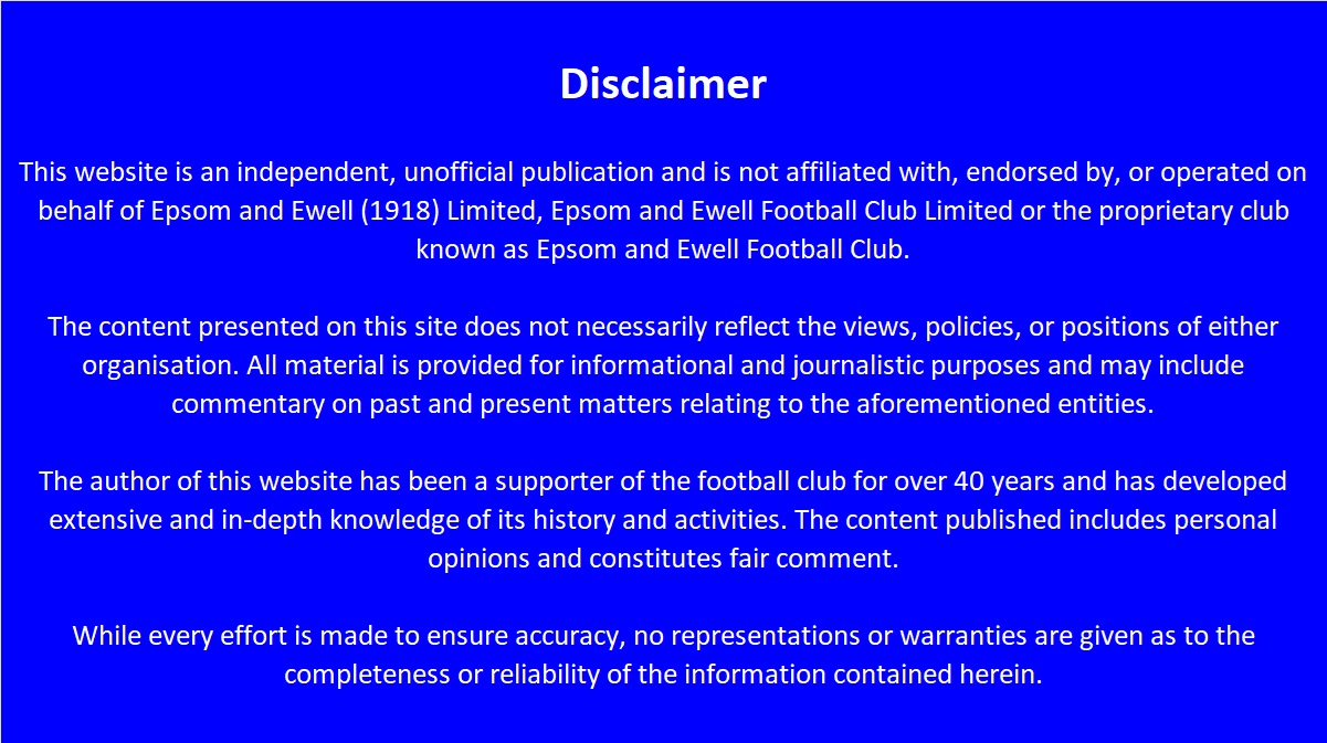 This website is always looking for sponsors. As you can see, it contains an enormous amount of information and gets thousands of page views each month, which is humbling, bearing in mind the level at which we play! It also contains a vast and detailed Historical Archive which is not just restricted to our club. If you wish to place an advert here, or even sponsor the site itself, just drop me a line and your help can enable me to expand the site still further! It clearly is in need of a bit of smartening up shortly, but in the meantime, given the choice, I'd always have information and accuracy as the main priorities ahead of a few random pictures of player huddles!