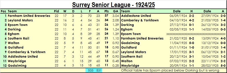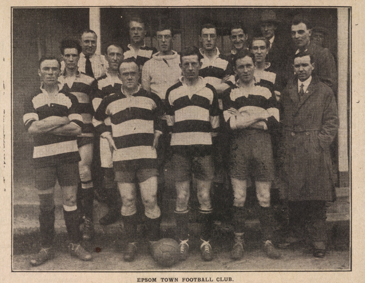 Epsom Town Line Up on Saturday 4th October 1924 v Camberley & Yorktown in the Surrey Senior League - winning 4-2 at Horton Hospital Grounds.
