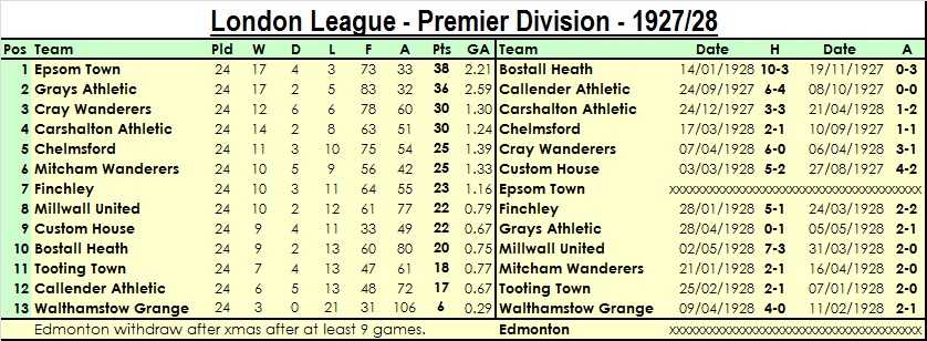 Epsom Town line up with the London League Shield. The date of this photo is unknown as this line up never actually played together, so I must conclude it was a specially arranged photo.
