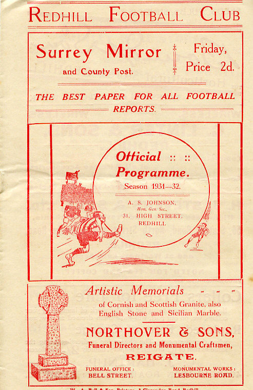 This is a programme from Epsom Town's Amateur Cup Fourth Qualifying Round tie at Redhill on 7th November 1931.