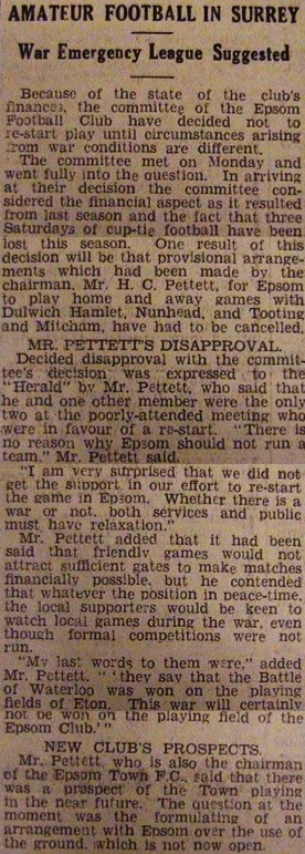 Epsom FC close down for World War Two.
