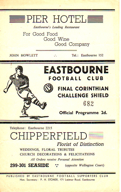 This programme was produced for the Corinthian League Memorial Shield Final against Hounslow on Easter Monday 14th April 1952.