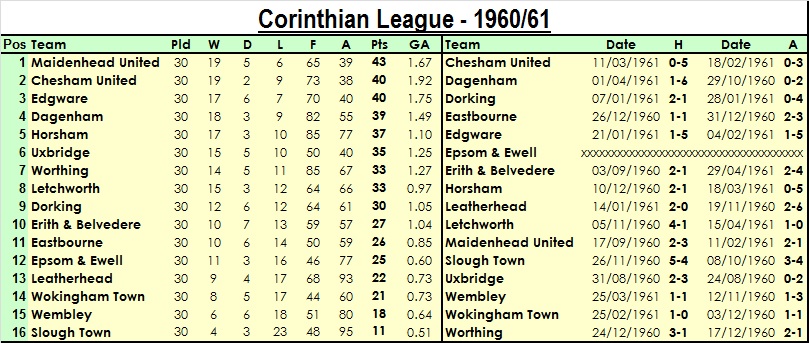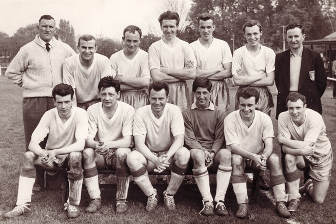 Epsom and Ewell F.C. Reserves line up at Finchampstead Road, home of Wokingham Town for a Corinthian League match on 29th April 1961.