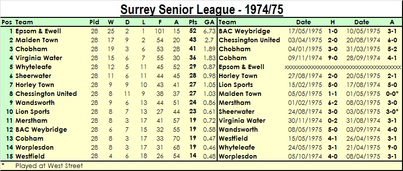 Epsom & Ewell line up before defeating Chessington United 2-0 in a Surrey Senior League match at West Street on Thursday 3rd April 1975.