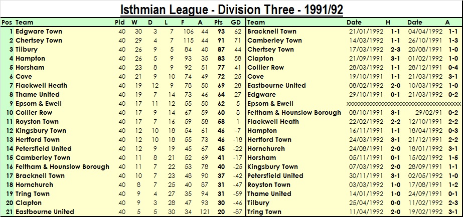 Epsom & Ewell line up before defeating Clapton 3-1 at West Street in an Isthmian League match on Saturday 21st September 1991.