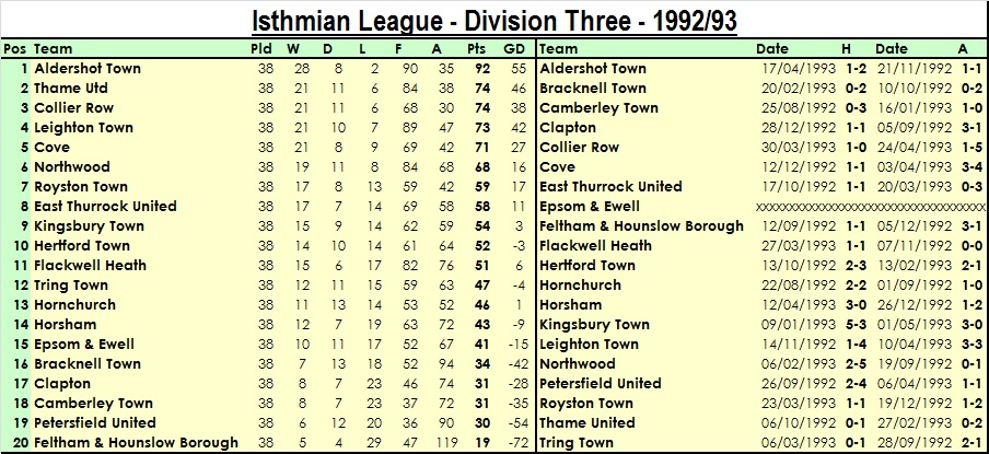Epsom & Ewell FC line up before their final ever game at West Street, a 1-0 victory over Chipstead on Thursday 6th May 1993.