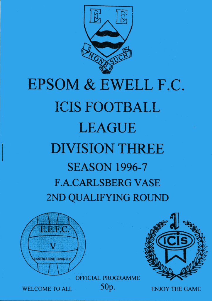 This is an Epsom & Ewell FC match programme from their F.A.Vase match at home to Eastbourne Town at Merland Rise on Saturday 5th October 1996.
