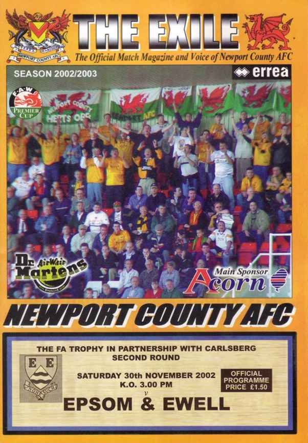 This is a match programme from Epsom & Ewell FC's only ever visit to Wales, when they met Newport County in the F.A.Trophy on Saturday 30th November 2002.