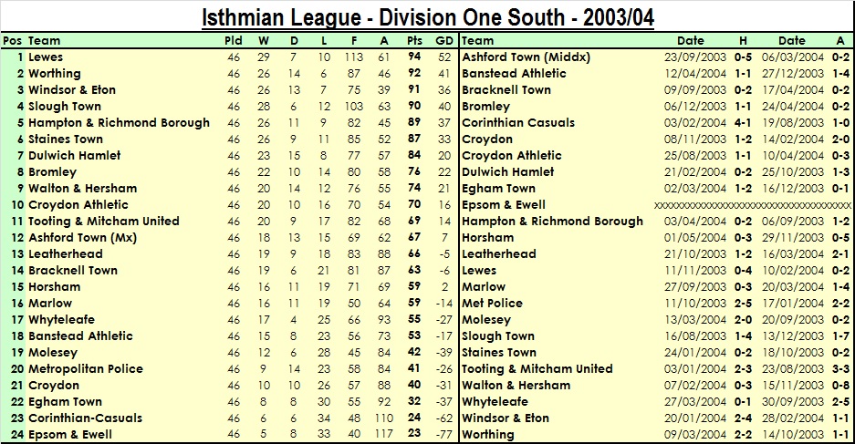 Horsham won this game 3-0 on Saturday 1st May 2004 and confirmed that we would finish bottom of the table with relegation to follow.