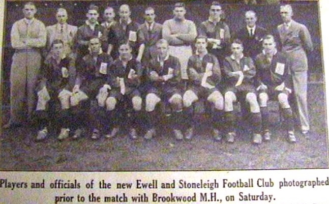 The newly formed Ewell & Stoneleigh F.C. line up for their first ever home game against Brookwood M.H. in the Surrey Senior League at West Street on Saturday 5th September 1936.