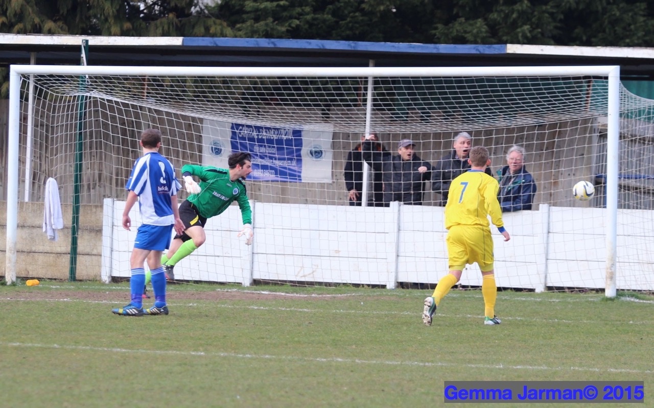 Daryl Cooper-Smith (left of picture) heads us in front on Saturday at Chertsey.