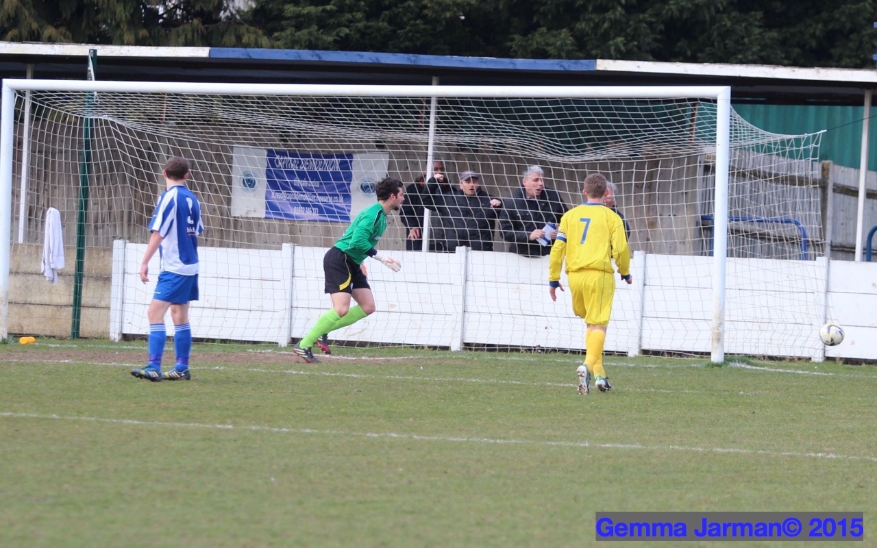 Savva 'Agi' Panayiotou (out of picture) gets an early birthday present when he curls in our second goal from just inside the box.