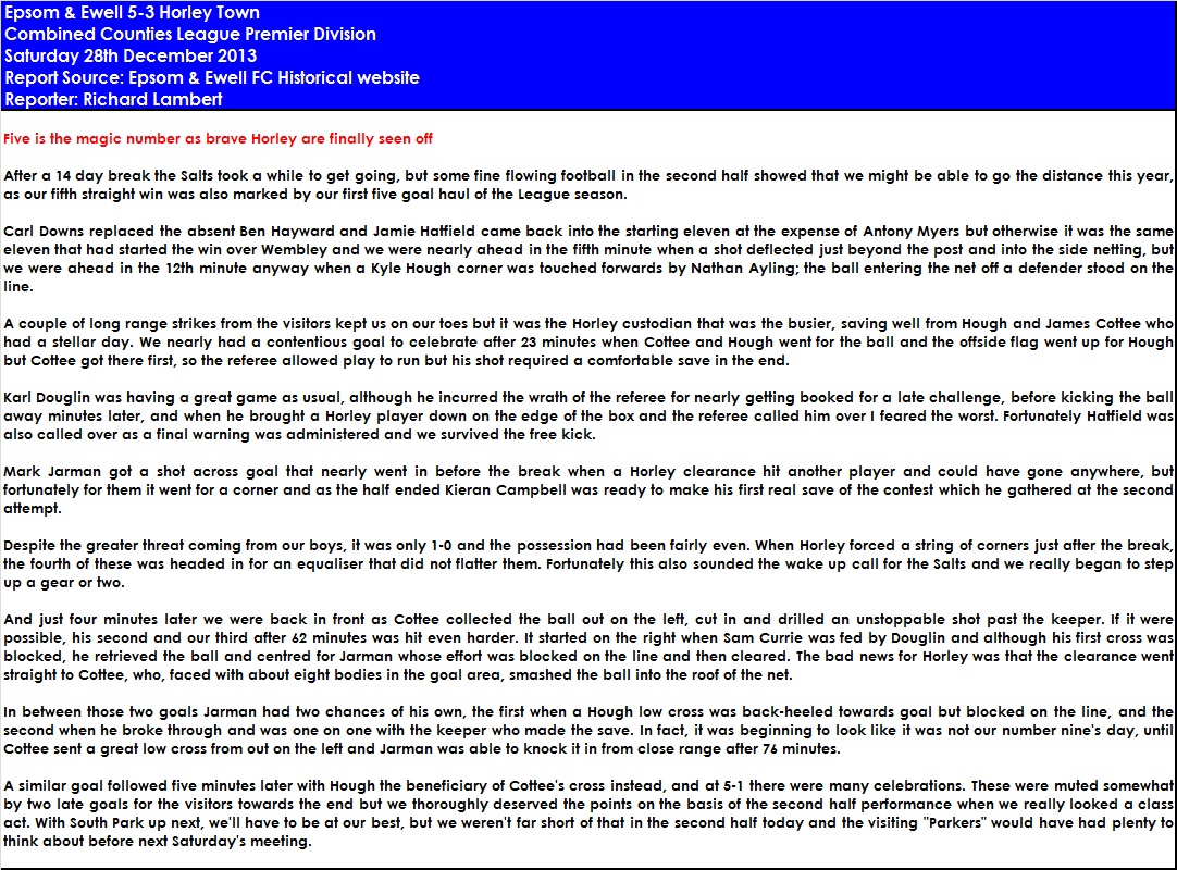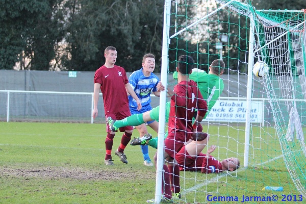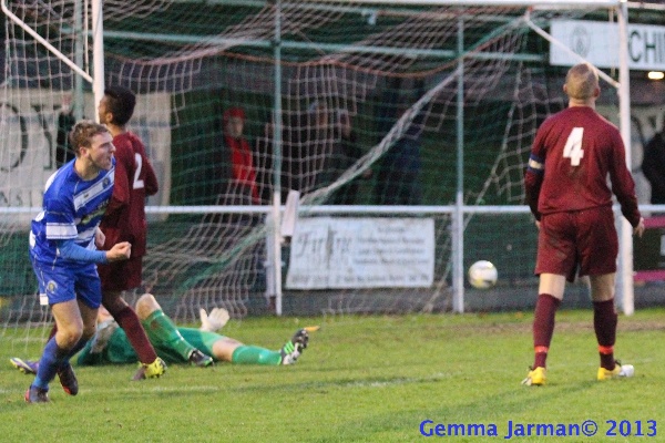 Our first goal against Horley after Nathan Ayling gets a touch to a Kyle Hough corner, the ball going in off a defender.