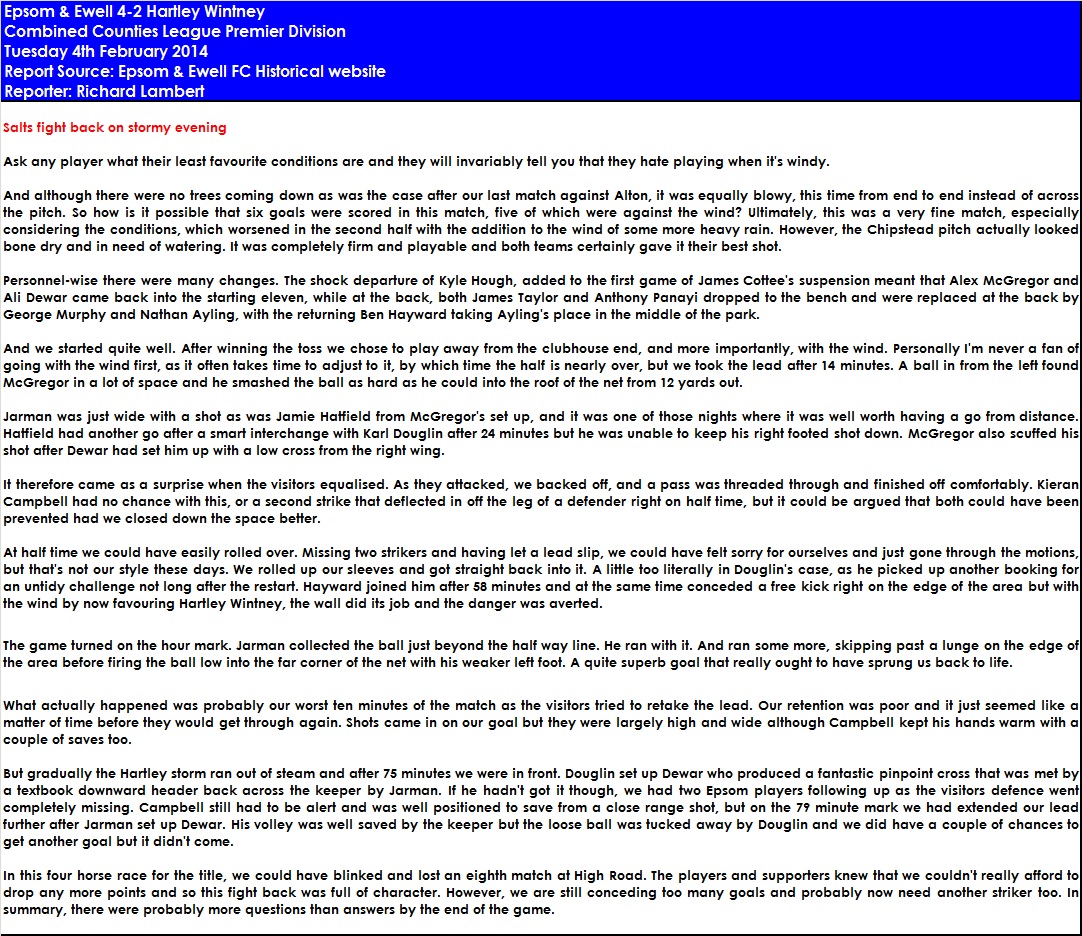 Here is a good view of Mark Jarman's equalising goal against Hartley Wintney. Nice work Gemma!