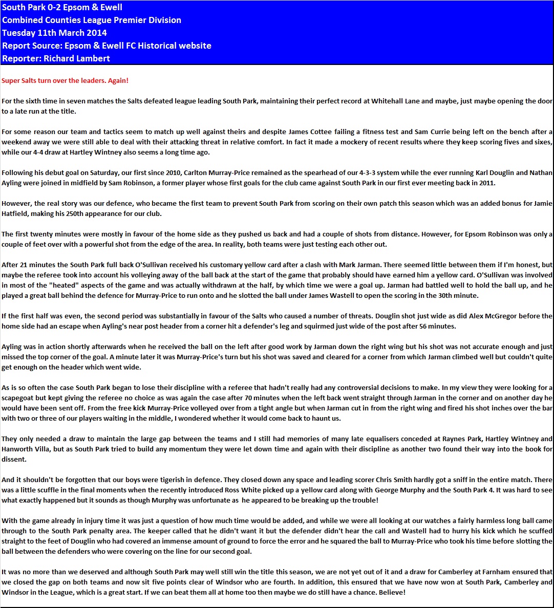 Carlton Murray Price opens the scoring after 30 minutes.