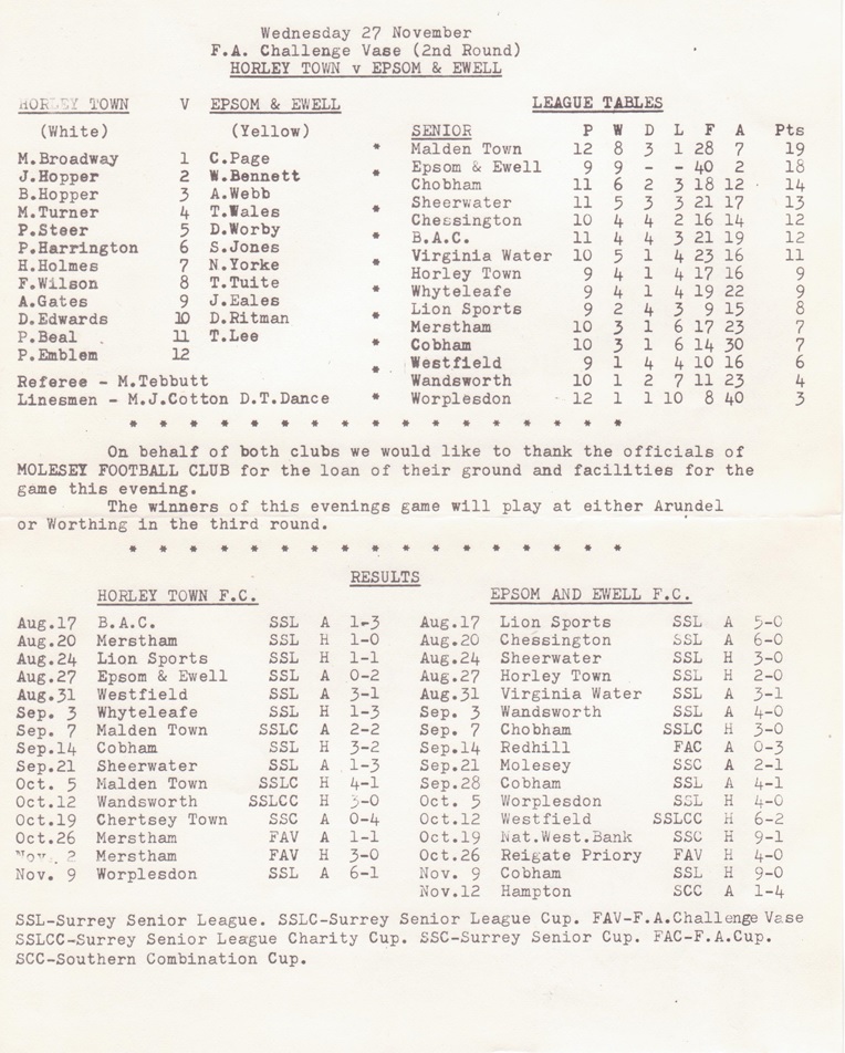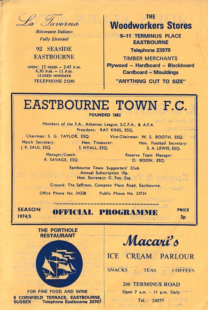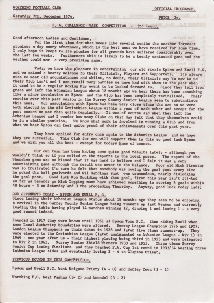 Match Reports & Programmes from our F.A. Vase 1974/75 run