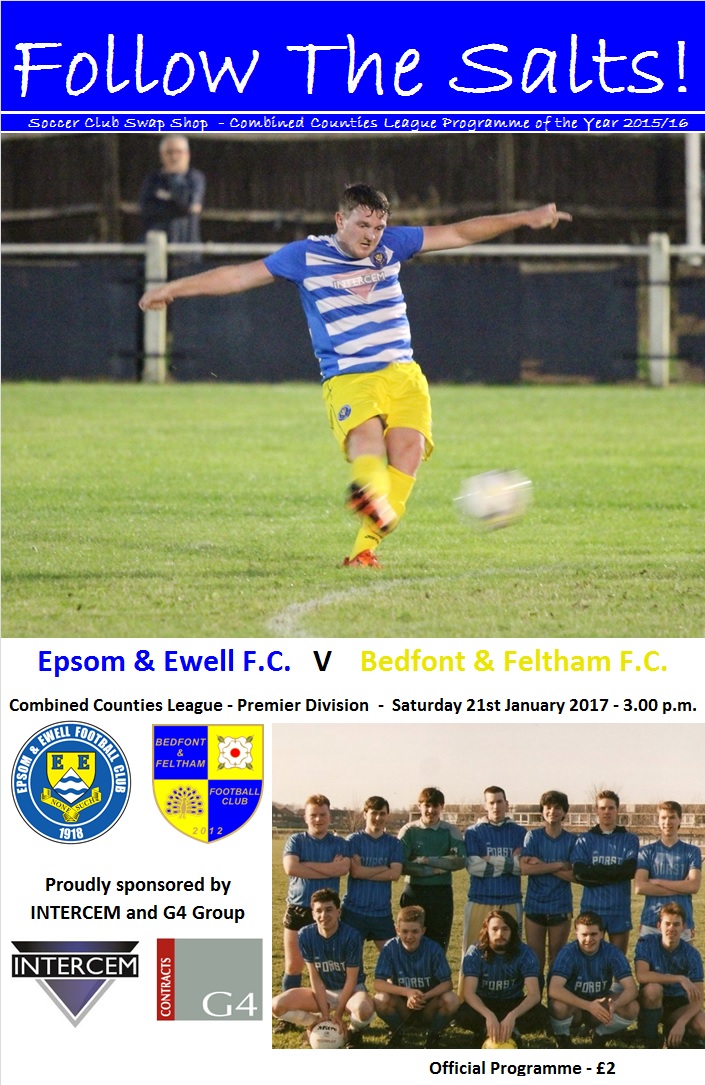 Here are the postponed home programmes from this season. The Bedfont & Feltham home prgramme on 21/01/2017 was re-issued with an insert on 07/03/2017 and this will be added shortly