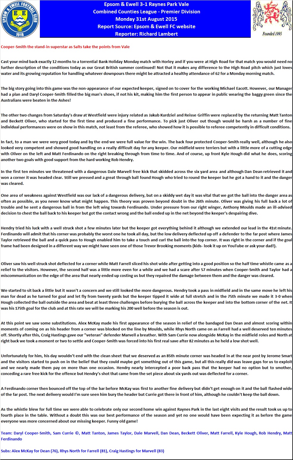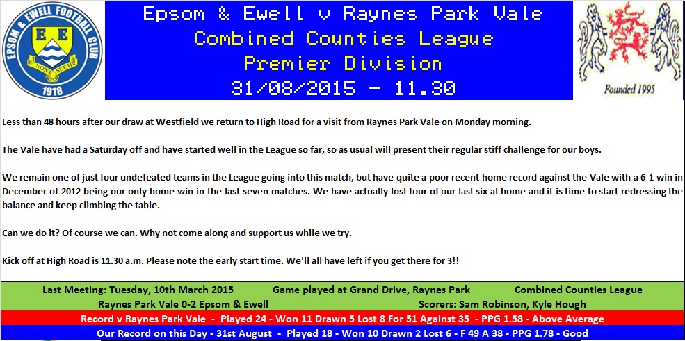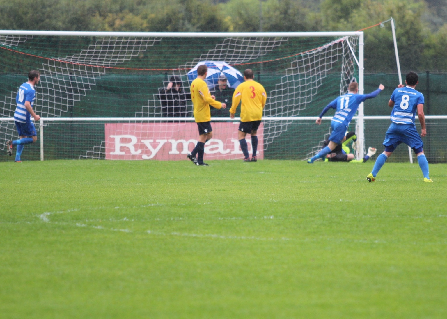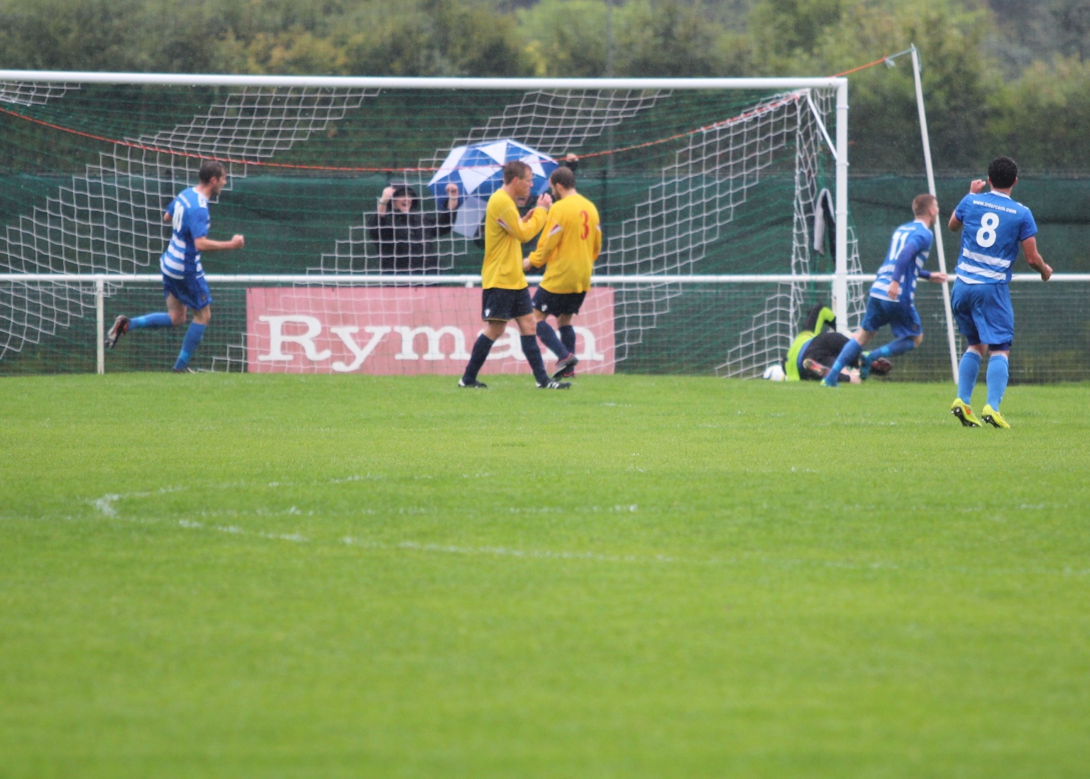 Our opening goal against Raynes Park Vale, courtesy of Raynes Park defender Anthony Moulds.