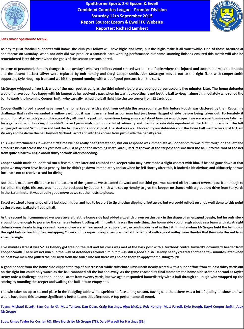 Rob Hendry meets Sam Currie's far post cross with a fine volley for our fourth goal