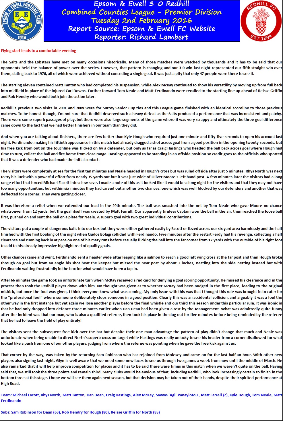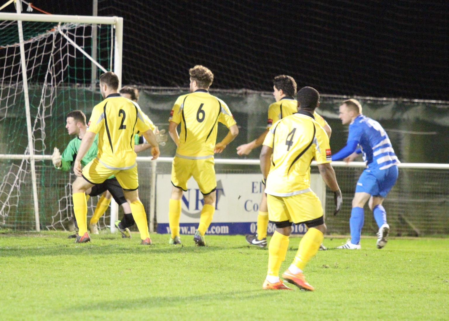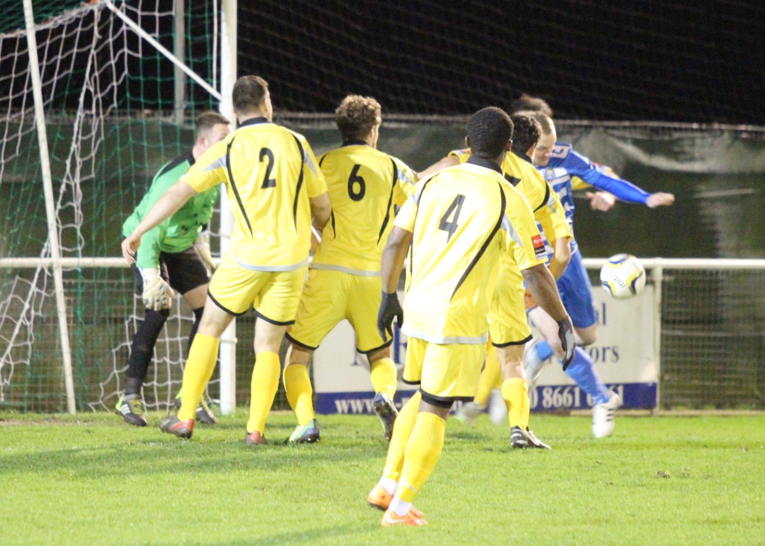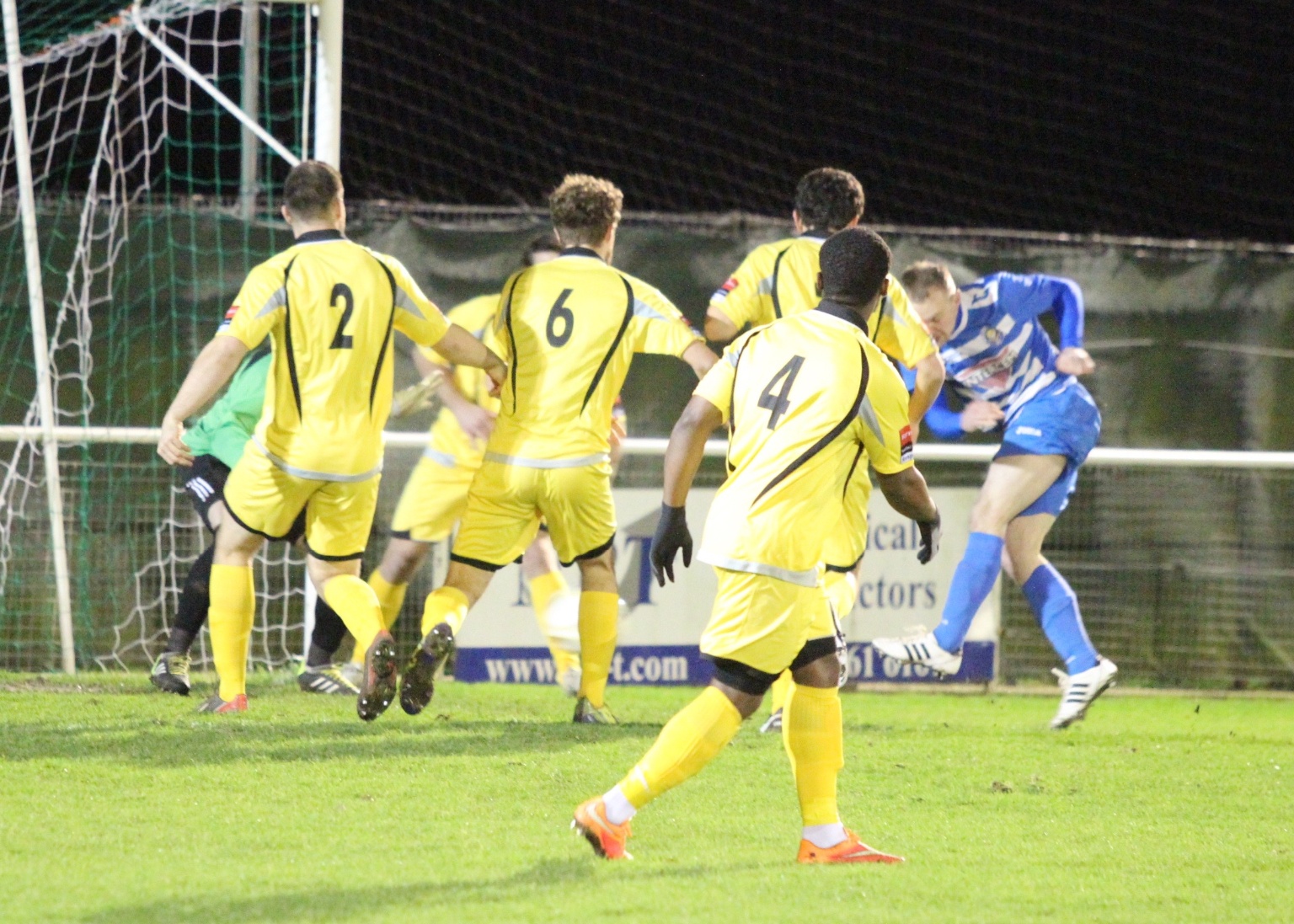 Kyle Hough receives the ball, turns and fires home our opener against Redhill.